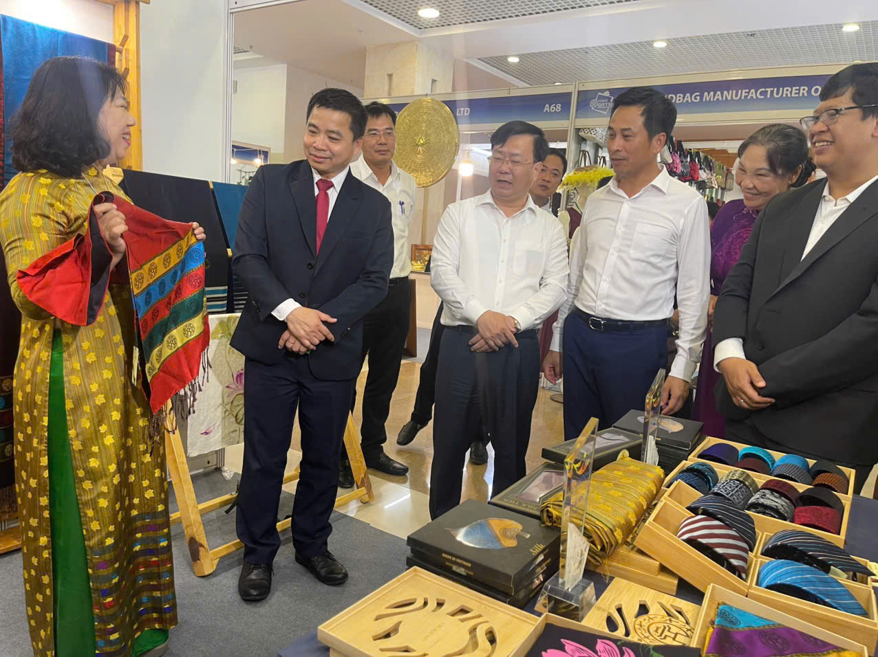 Các đại biểu tham quan gian hàng Lụa Vạn Phúc tại Hanoi Giftshow 2025
