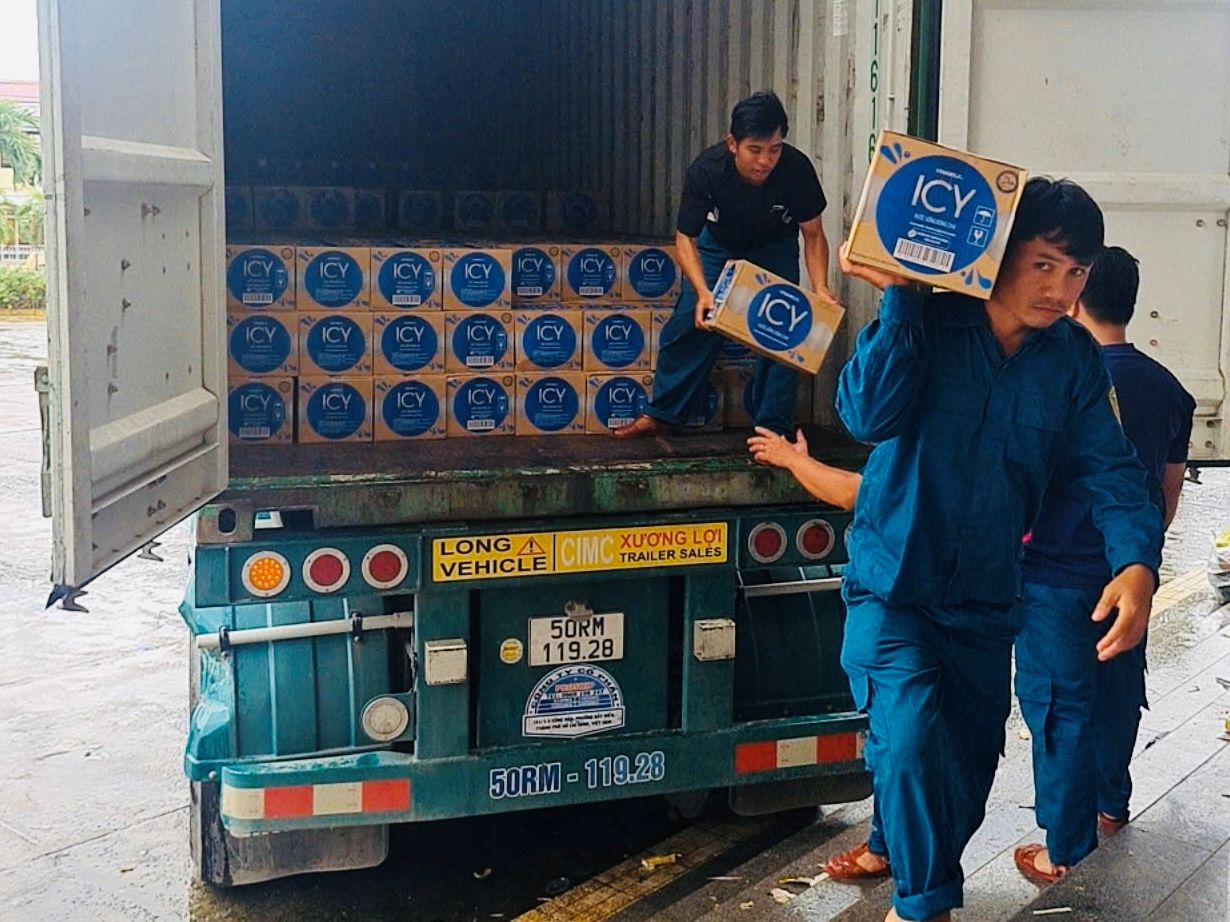 Hàng trăm nghìn sản phẩm Vinamilk được trao tặng cùng nhiều yêu thương và mong muốn đồng bào vùng lũ sớm phục hồi hậu thiên tai - Ảnh: Vi Nam