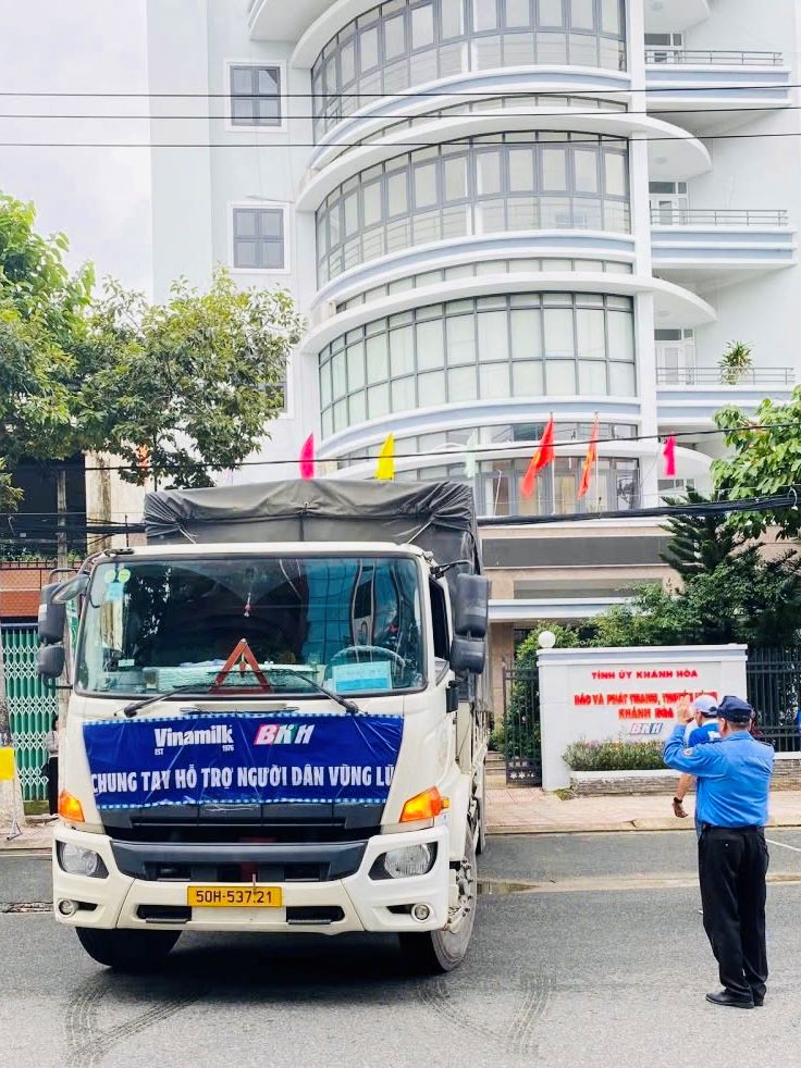 Những chuyến xe dinh dưỡng của Vinamik đã có mặt ở Mặt trận Tổ quốc và cơ quan báo – đài địa phương, kịp thời tiếp ứng dinh dưỡng cho bà con vùng lũ - Ảnh: Vi Nam