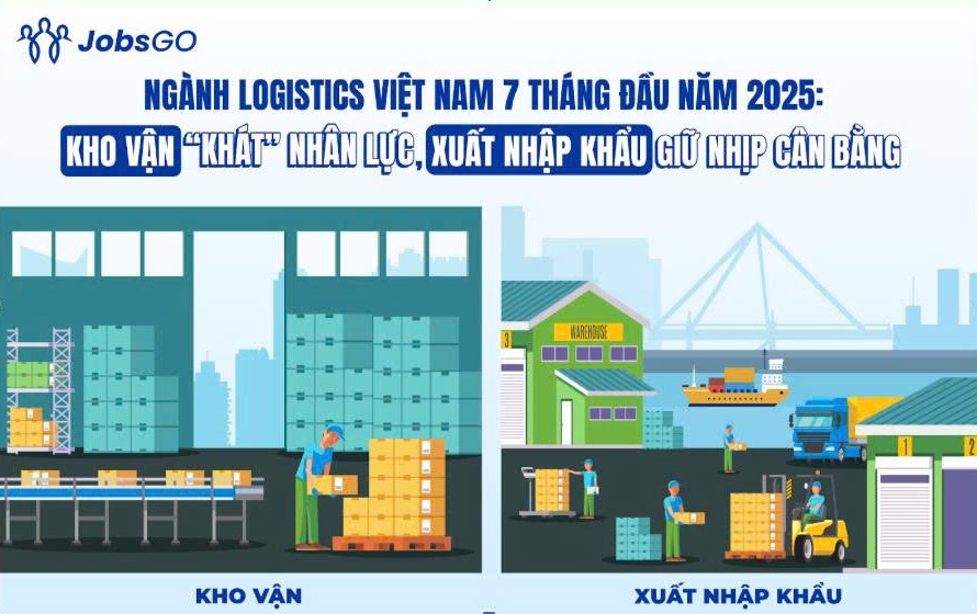 Song song đó, dữ liệu từ JobsGO (nền tảng tuyển dụng & tìm việc hàng đầu Việt Nam) chỉ ra rằng nhu cầu tuyển dụng nhân viên xuất nhập khẩu, nhân viên khai báo hải quan,... cũng tăng mạnh. Đối với mảng Kho vận, số lượng tin đăng tuyển trong tháng 7 tăng 73,2% so với cùng kỳ, chủ yếu ở các vị trí như giám sát kho, nhân viên kho vận, nhân viên giao hàng…