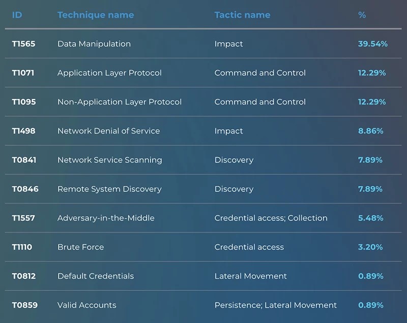 Theo báo cáo từ Nozomi Networks Labs, trong nửa cuối năm ngoái, 48,4% các cảnh báo an ninh mạng được ghi nhận thuộc giai đoạn tác động (impact phase) trong chuỗi tấn công mạng (cyber kill chain). Điều này diễn ra trên nhiều lĩnh vực, đặc biệt là sản xuất, giao thông vận tải, năng lượng, tiện ích và xử lý nước/thải. Các kỹ thuật điều khiển và chỉ huy (Command and Control - C&C) đứng thứ hai, chiếm 25% tổng số cảnh báo. Phát hiện này cho thấy sự hiện diện của các tác nhân đe dọa trong các hệ thống hạ tầng quan trọng, cùng với ý đồ duy trì quyền kiểm soát truy cập.