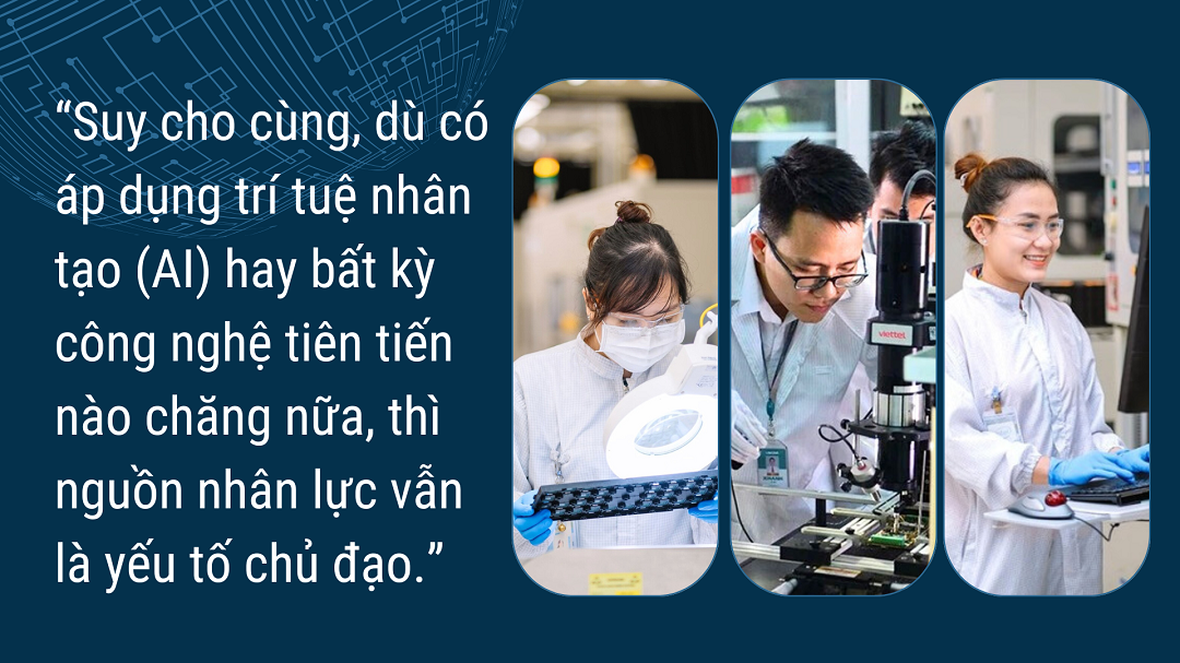 Ở góc độ doanh nghiệp, ông Nguyễn Trung Thành - Giám đốc Kinh doanh, Công ty Cổ phần Tập đoàn Long Phương cũng cho biết, nguồn nhân lực là vấn đề xuyên suốt trong hành trình phát triển của doanh nghiệp. Ông Thành dẫn chứng từ thực tế, suy cho cùng, dù có áp dụng trí tuệ nhân tạo (AI) hay bất kỳ công nghệ tiên tiến nào chăng nữa thì nguồn nhân lực vẫn là yếu tố chủ đạo. Doanh nghiệp luôn luôn khát khao và tìm kiếm người tài với mong muốn khai phá những ý tưởng có tính mới, đặc trưng nhằm hướng đến sự phát triển bền vững.