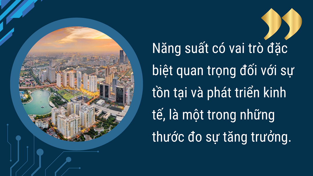 Ở cấp quốc gia, người ta coi năng suất là yếu tố then chốt để tăng trưởng kinh tế. Ở cấp doanh nghiệp, năng suất - chất lượng - hiệu quả luôn là khẩu hiệu trong các nhà máy sản xuất. Có thể nói rằng, năng suất có vai trò đặc biệt quan trọng đối với sự tồn tại và phát triển kinh tế, là một trong những thước đo sự tăng trưởng.