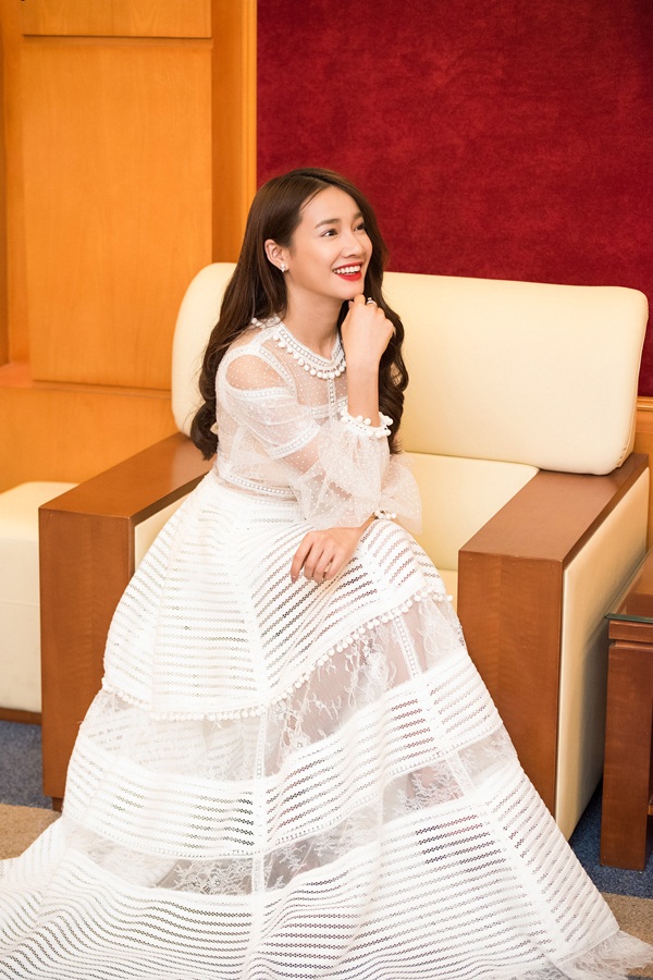 Sau đó, Thụy Vân tiếp tục thay bộ váy của NTK Hoàng Hải