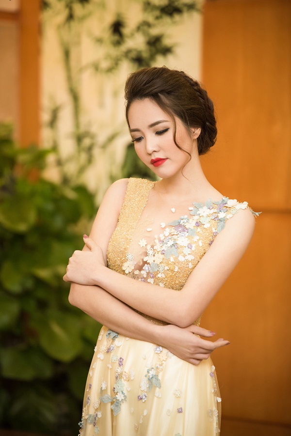 Gần đây, Thụy Vân thường xuyên xuất hiện vô cùng lộng lẫy trong những thiết kế của Hoàng Hải