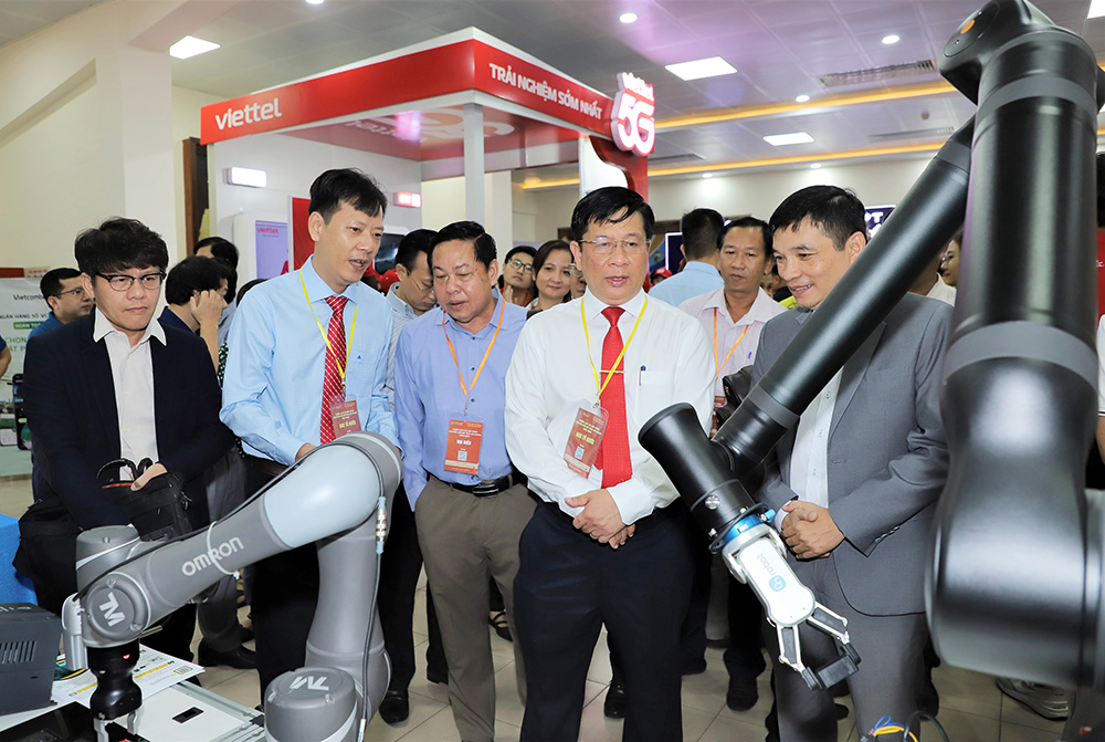 Lãnh đạo tỉnh An Giang tham quan chuỗi sự kiện chuyển đổi số. (Ảnh: Báo An Giang)