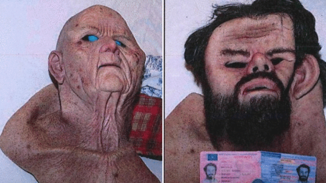 Hai mặt nạ bằng cao su mà bác sĩ Martin dùng để cải trang.
