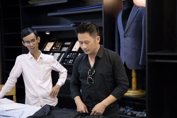 Nam ca sĩ lấy số đo cũng như tham khảo một số mẫu cuốn hút tại cửa hàng với sự giúp đỡ nhiệt tình từ nhân viên thiết kế Vest riêng cho anh ở đây. Bằng Kiều cũng khá kỹ tính khi tìm cho mình những chất liệu cùng những mẫu mã ưng ý nhất.