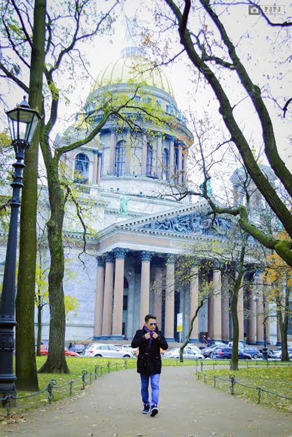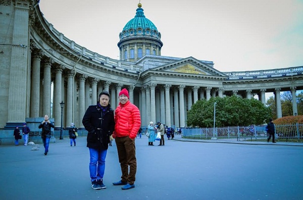 Nam danh ca ghi điểm với phong cách thời trang trẻ trung và sành điệu. Anh chia sẻ, tuy là mùa Thu nhưng không khí ở đây rất lạnh, khiến anh phải “kín mít” khi ra đường. Bằng Kiều tận hưởng những phút thư giãn ở thành phố lớn là Xanh Petecbua và thủ đô Moscow.