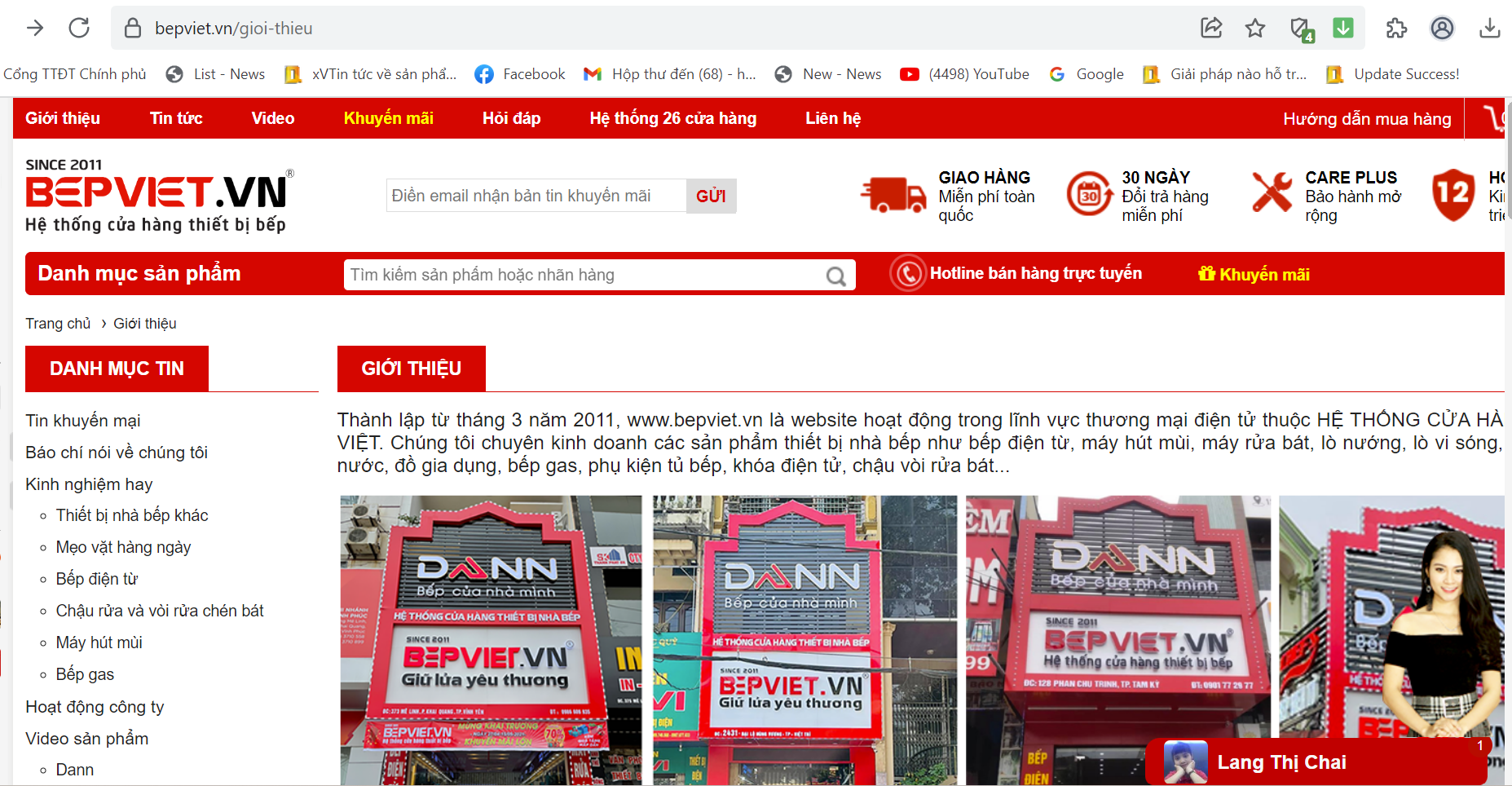 Website hệ thống Bếp Việt (sở hữu bởi Công ty TNHH Dann Việt Nam).