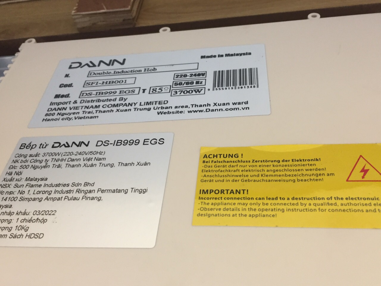 Sản phẩm bếp điện từ của Công ty TNHH Dann Việt Nam không có dấu hợp quy.