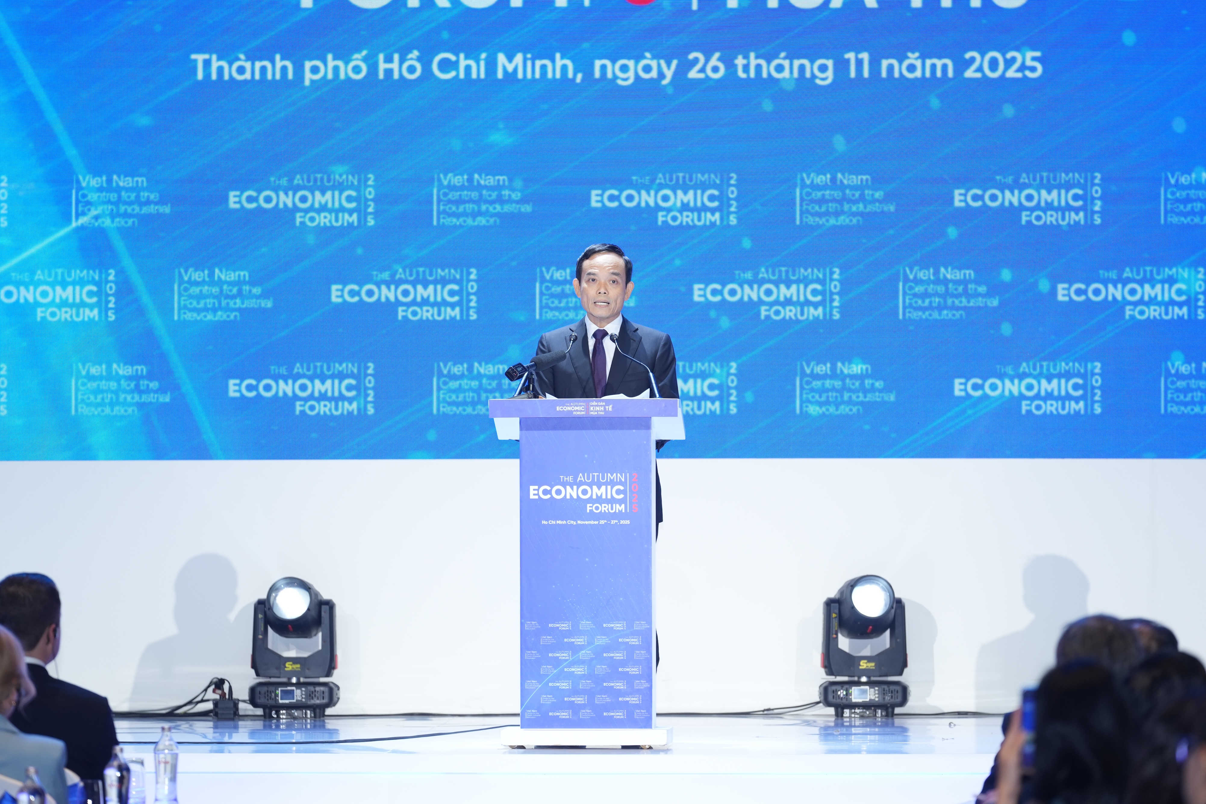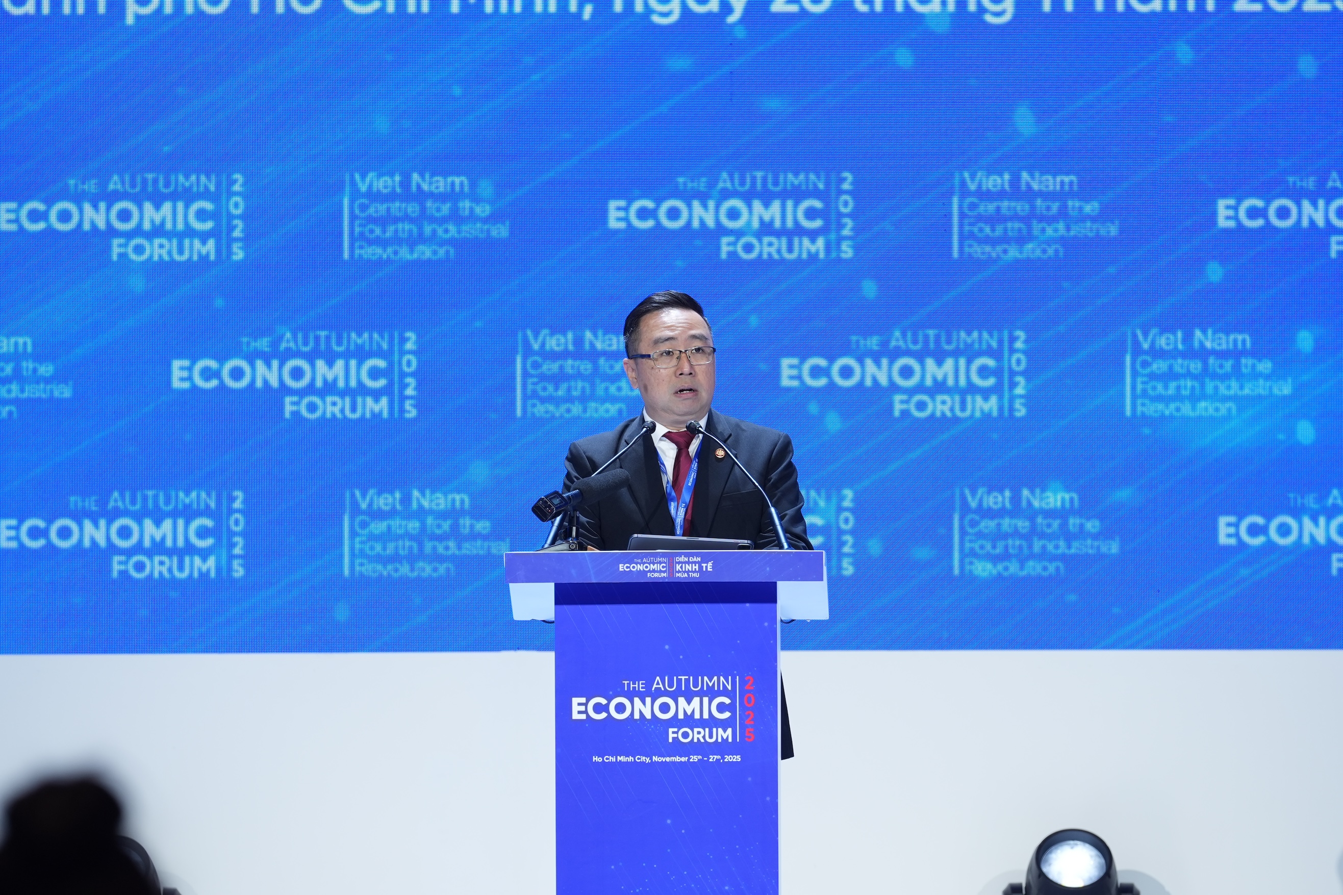 Sáng ngày 26/11, Diễn đàn Kinh tế mùa thu năm 2025 với chủ đề “Chuyển đổi xanh trong kỷ nguyên số" đã chính thức khai mạc tại Trung tâm Hội nghị Thisky Hall, Khu đô thị Sala, TP.HCM. Sự kiện do Thủ tướng Chính phủ chỉ đạo trực tiếp, UBND TP.HCM chủ trì, Trung tâm Cách mạng Công nghiệp lần thứ 4 tại TP.HCM phối hợp cùng các cơ quan, bộ ngành và Diễn đàn Kinh tế Thế giới (WEF) tổ chức.