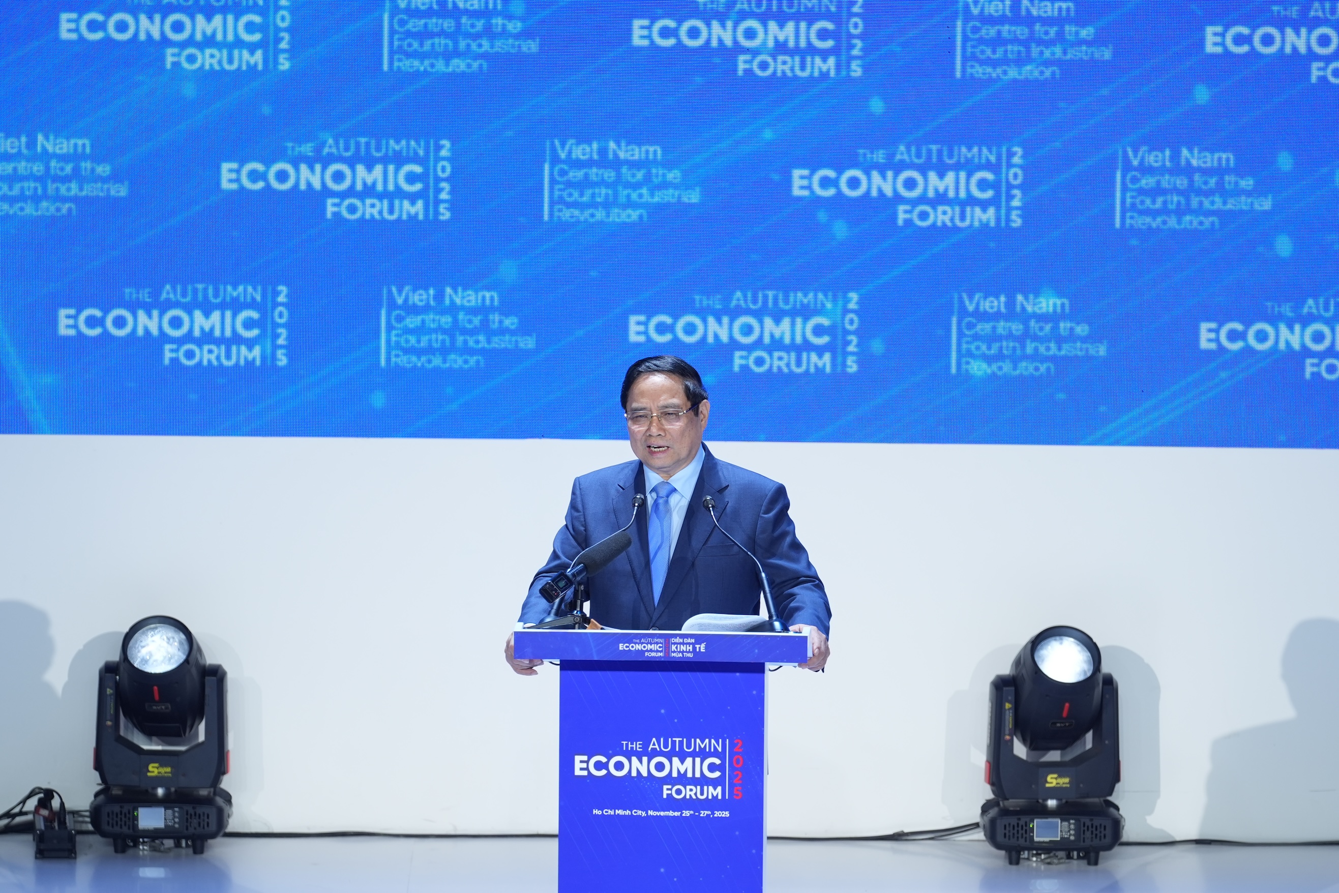 Thủ tướng Chính phủ Phạm Minh Chính phát biểu định hướng Diễn đàn Kinh tế mùa thu năm 2025. (Ảnh: BTC)