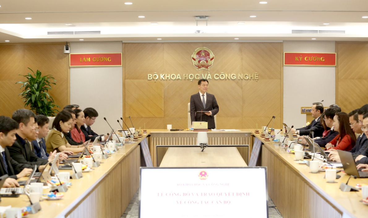 Tại buổi lễ, đại diện Vụ Tổ chức cán bộ (TCCB), Bộ KH&CN đã công bố các quyết định về điều động và bổ nhiệm cán bộ của Bộ trưởng Bộ KH&CN cho các đơn vị, gồm: