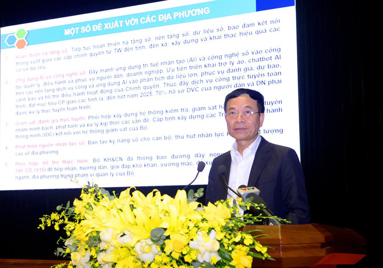 Bộ trưởng Bộ KH&CN Nguyễn Mạnh Hùng nhấn mạnh, việc giao thêm nhiều nhiệm vụ cho cấp xã phải đi đôi với việc tăng cường các công cụ hỗ trợ, đặc biệt là ứng dụng công nghệ số và trí tuệ nhân tạo; đồng thời, đề xuất 5 nhóm giải pháp trọng tâm mà các địa phương cần triển khai nhằm bảo đảm vận hành hiệu quả mô hình chính quyền địa phương 2 cấp.