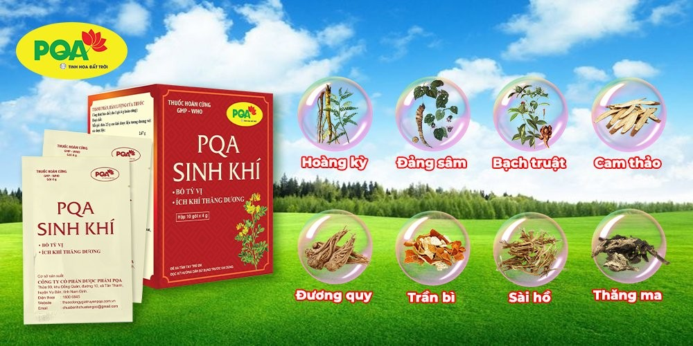 Qua nghiên cứu và ứng dụng lâm sàng bài thuốc cổ phương “Bổ Trung Ích Khí” Dược Phẩm PQA đã sản xuất thành công sản phẩm PQA Sinh Khí. Sản phẩm có công dụng bồi bổ tỳ vị, ích khí thăng dương, điều trị chứng tỳ vị hư, ăn kém, suy nhược cơ thể, sốt cơ năng kéo dài, người ốm lâu ngày, người mệt mỏi chân tay vô lực, hơi thở ngắn, đoản hơi.