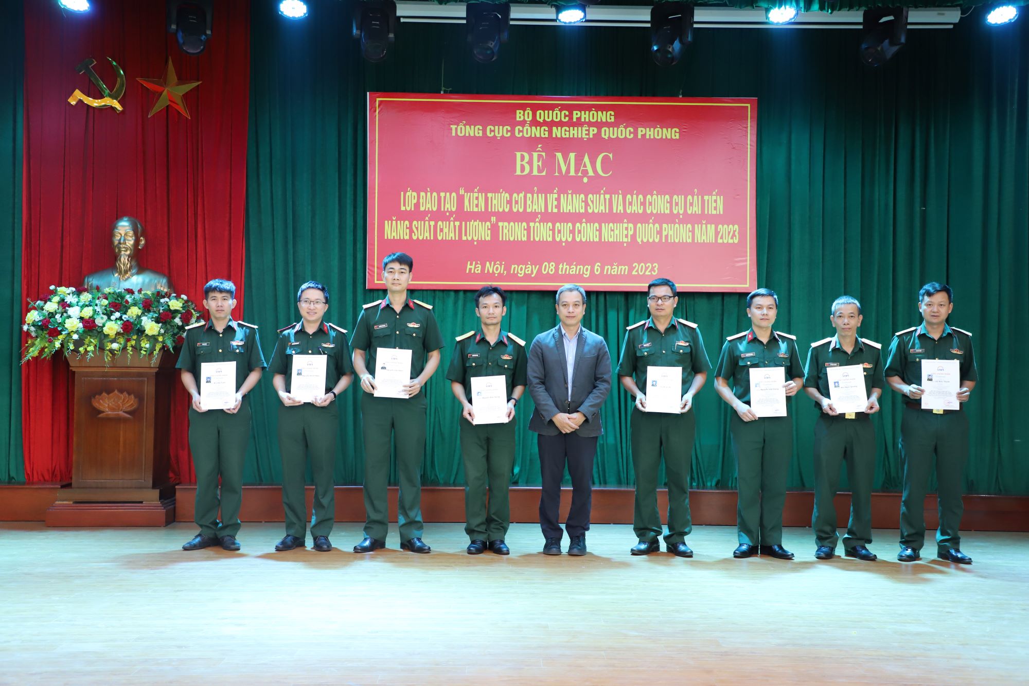 (VietQ.vn) - Mới đây, Viện Năng suất Việt Nam (Tổng cục Tiêu chuẩn Đo lường Chất lượng) phối hợp cùng Tổng cục Công nghiệp quốc phòng (Bộ Quốc phòng) tổ chức lễ bế mạc lớp đào tạo “Kiến thức cơ bản về năng suất và các công cụ cải tiến năng suất chất lượng” trong Tổng cục năm 2023.