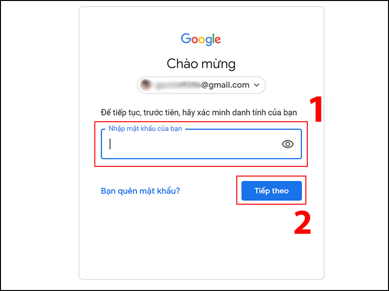 Bước 2: Nhập mật khẩu của bạn > Chọn Tiếp theo.