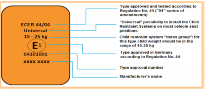 Quy định UNECE R 44 (UN Regulation No 44) quy định sự an toàn của ghế ngồi cho trẻ em trên xe ô tô. Hệ thống ghế an toàn cho trẻ em được phê duyệt theo UNECE R 44 được phân loại thành năm nhóm cân nặng, gồm: nhóm 0 (từ sơ sinh đến 10kg), nhóm 0+ (từ sơ sinh đến 13kg), nhóm 1 (từ 9 đến 18kg), nhóm 2 (từ 15 đến 25kg) và nhóm 3 (từ 22 đến 36kg).