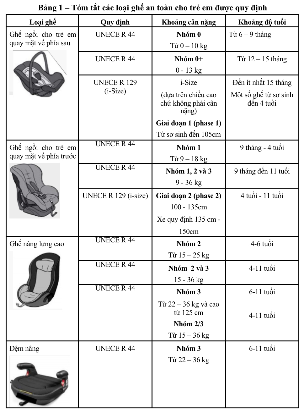 Quy định của Liên Hợp Quốc (UN) về hệ thống ghế an toàn cho trẻ em (CRS) trên xe ô tô
