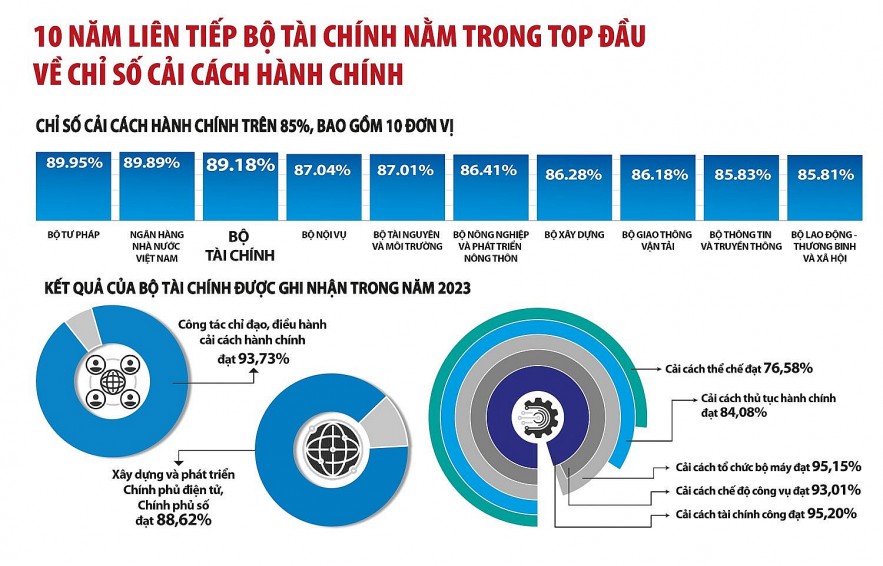 Với chỉ số này, Bộ Tài chính trong 10 năm trở lại đây luôn đạt trên 80 điểm trên thang điểm 100 (loại tốt) và nằm trong top 3 đơn vị trung ương dẫn đầu. Việc duy trì được thứ hạng của mình trong suốt 10 năm qua phản ánh một cách khá khách quan, bền vững, ổn định nỗ lực của Bộ Tài chính nói riêng và các cơ quan của Bộ Tài chính về cải cách hành chính.