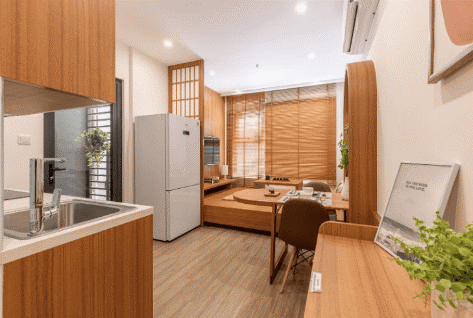 Căn 1 ngủ của SA5 – The Sakura theo phong cách Nhật Bản được bố trí tối ưu mở ra không gian sinh hoạt thoải mái được nhiều khách hàng đánh giá cao.Mỗi sàn của toà tháp SA5 đều có 8 căn hộ 1PN với diện tích các căn từ 42,4 – 47,6m2, lớn hơn các căn 1 ngủ tiêu chuẩn thông thường, đáp ứng trọn vẹn nhu cầu của khách thuê đồng thời làm gia tăng giá trị của những căn hộ này. Trong đó, mỗi căn gồm 1 phòng ngủ rộng rãi, 1 nhà vệ sinh, 1 phòng khách, bếp và bàn ăn nối liền, mở ra không gian sinh hoạt thoải mái, thuận tiện và đầy đủ tiện nghi. Tất cả các căn hộ đều được hưởng trọn ánh sáng tự nhiên với tầm nhìn khoáng đạt, mang đến không gian sống thư giãn tràn đầy cảm hứng.