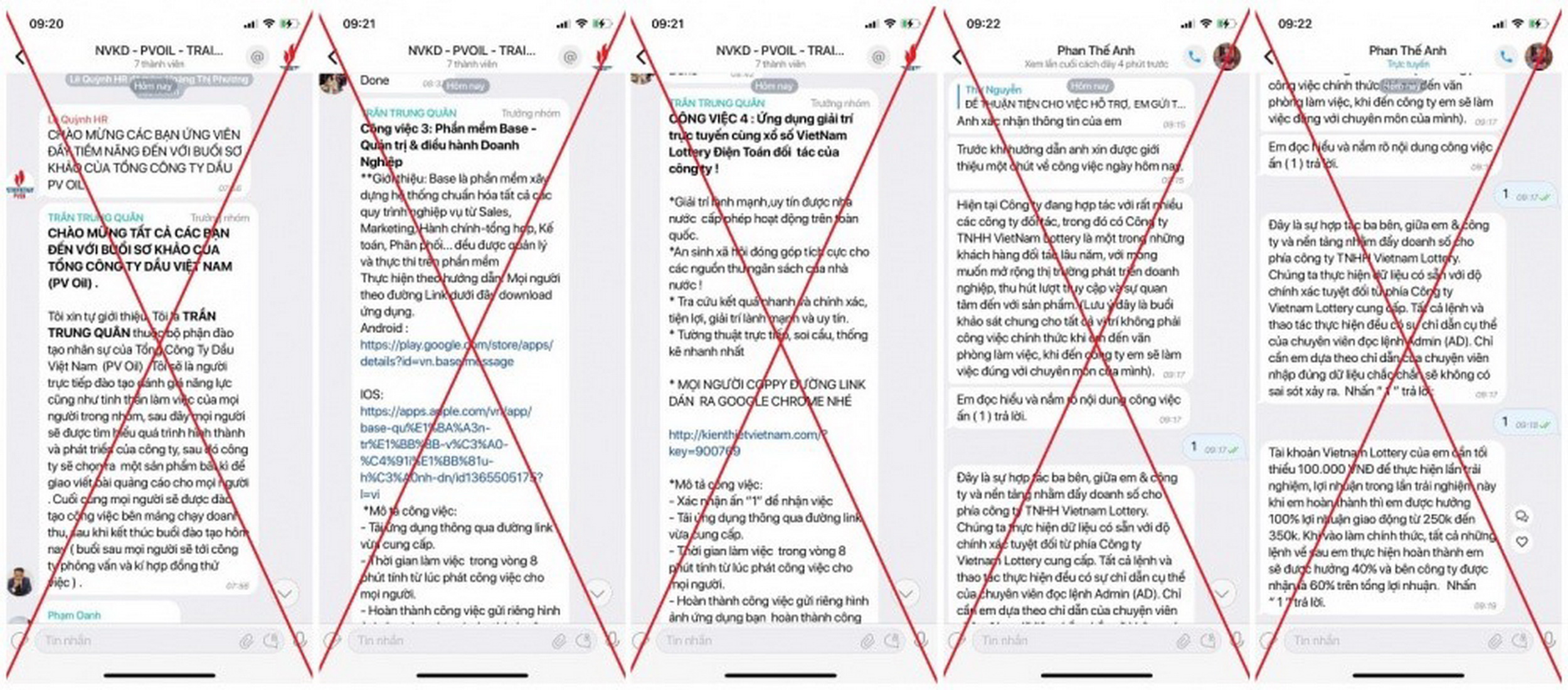 Các thủ đoạn phổ biến mà những kẻ này sử dụng đó là kêu gọi đầu tư, giao dịch chuyển khoản, gia nhập vào các nhóm xổ số, tải các nền tảng ứng dụng để kiểm tra, khảo sát năng lực, nhận quà tặng… Ngoài ra, những kẻ mạo danh còn yêu cầu ứng viên tham gia vào nhiều hội, nhóm chat trên nhiều nền tảng khác nhau như WhatsApp, Telegram, Zalo... để thực hiện phỏng vấn; yêu cầu ứng viên tải thêm nhiều ứng dụng khác, tạo tài khoản trên các trang web xổ số, các trang thương mại điện tử… để thực hiện chuyển tiền trực tuyến vào tài khoản của các tổ chức, cá nhân mạo danh.