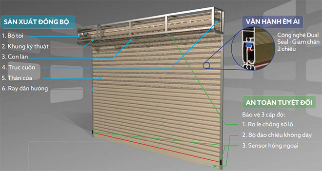 Cửa cuốn lắp ráp đồng bộ và có các tính năng an toàn. Ảnh internet