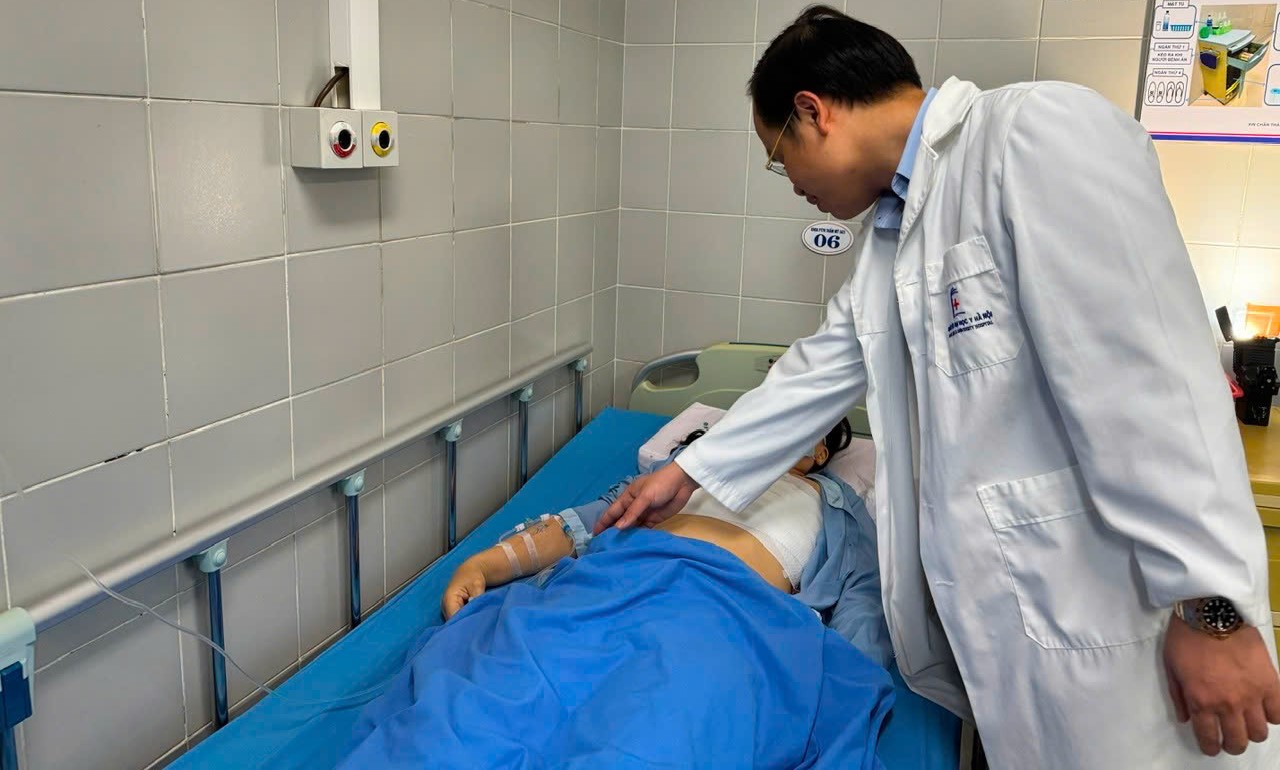 Bác sĩ thăm khám bệnh nhân sau ca phẫu thuật.