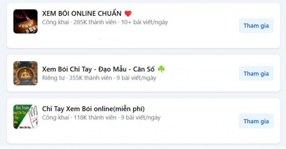 Một số hội nhóm tổ chức xem bói online trên mạng xã hội