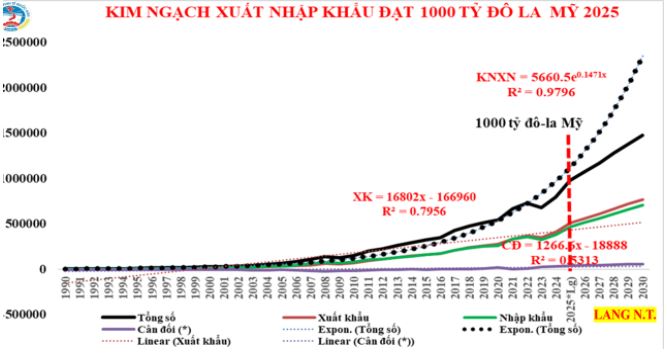 Hình 4: Tổng kim ngạch xuất - nhập khẩu hàng hóa Việt Nam đạt 1000 tỷ đô-la Mỹ năm 2025