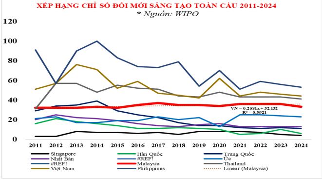 Hình 5: Xếp hạng chỉ số đổi mới sáng tạo toàn cầu Việt Nam 2011-2024
