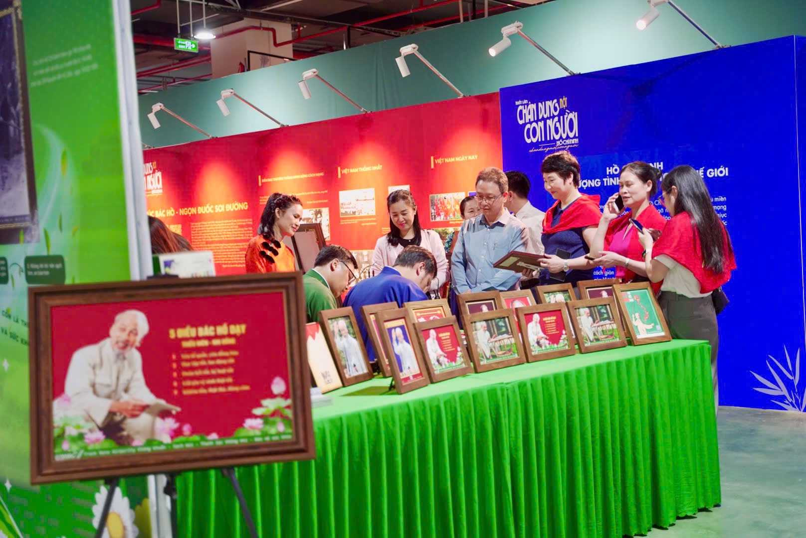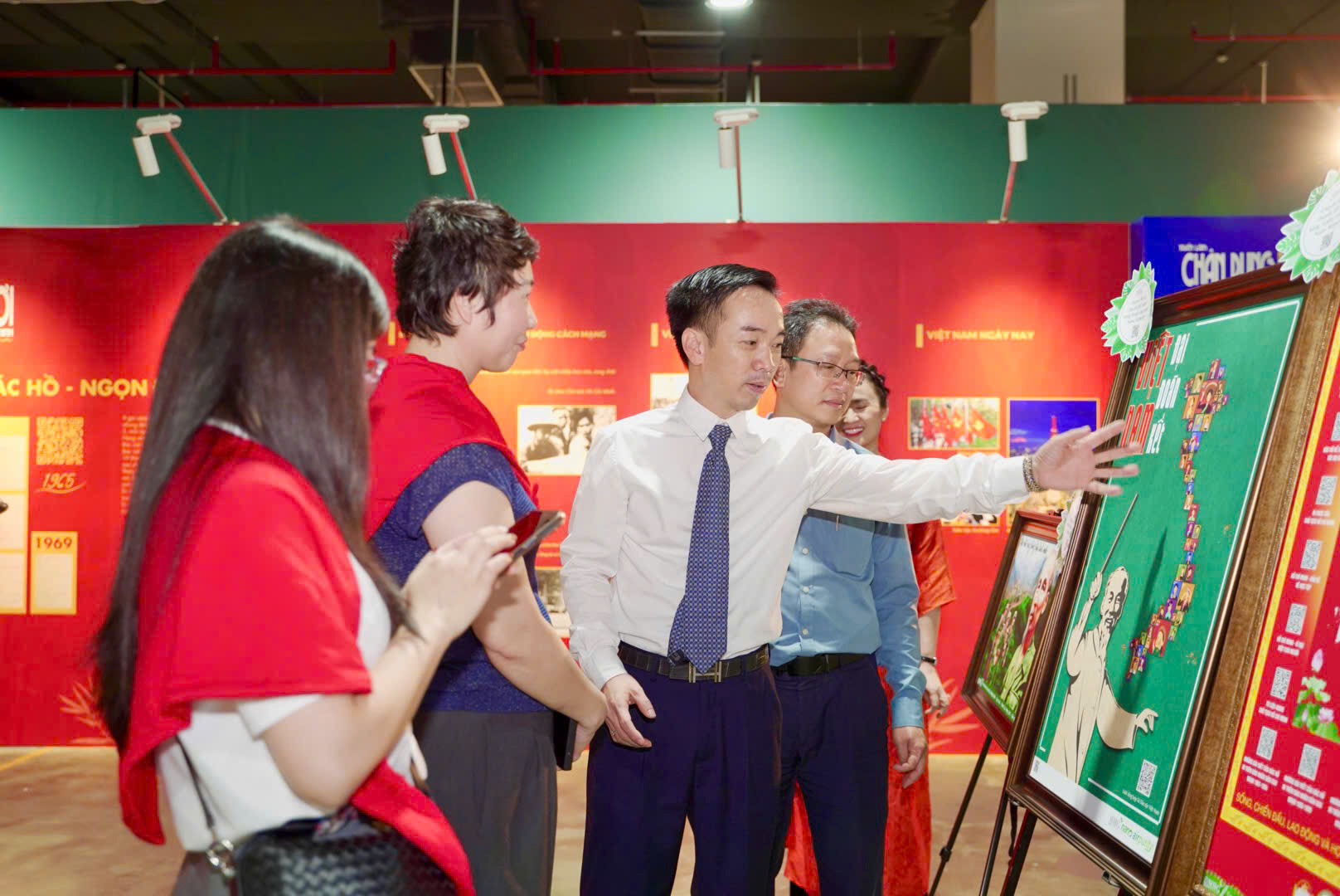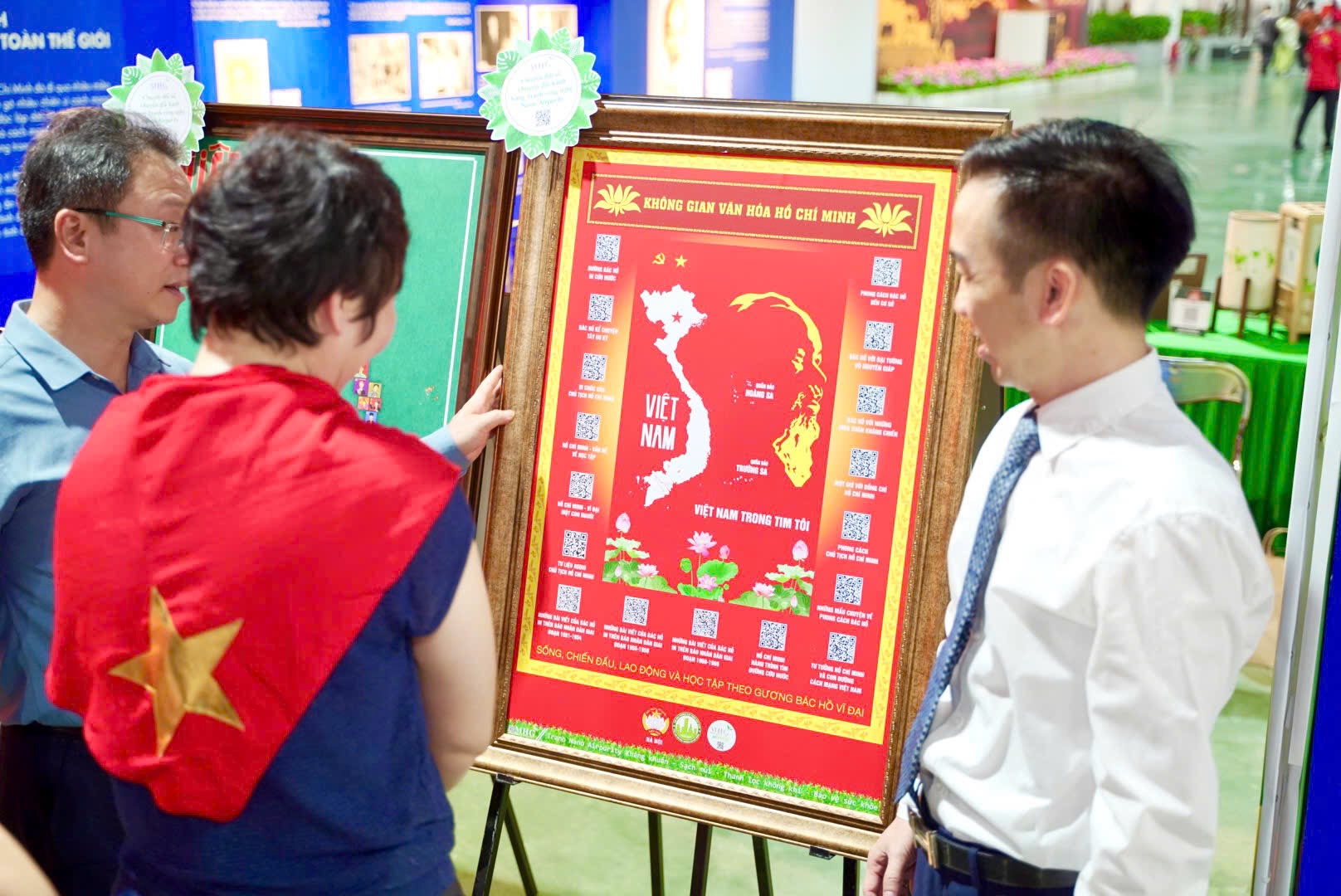 Một trong những điểm nhấn của triển lãm là không gian trải nghiệm công nghệ hiện đại do MaiHoa Group thực hiện. Những hình ảnh về Chủ tịch Hồ Chí Minh được in trên chất liệu Nano Airpurity – một nguyên liệu xanh, thân thiện môi trường. Mỗi tác phẩm còn tích hợp mã QRcode, giúp khách tham quan dễ dàng tiếp cận các tư liệu số hóa, khám phá thêm thông tin về cuộc đời và sự nghiệp vĩ đại của Người.