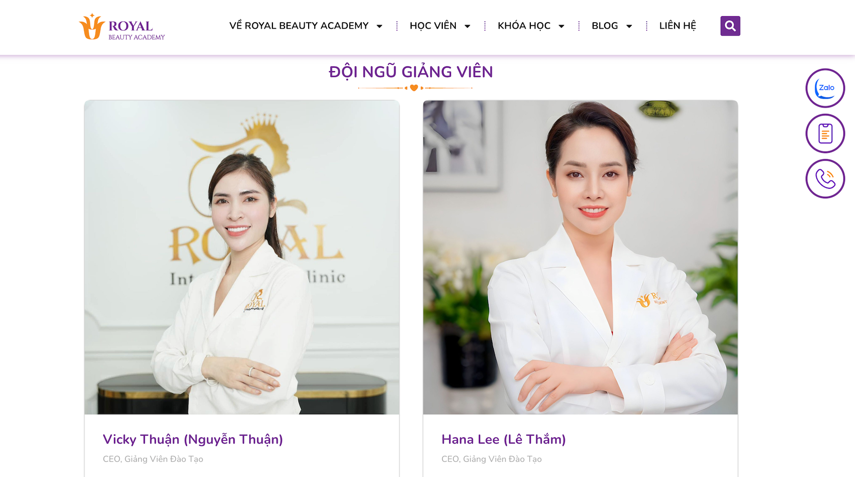 Đội ngũ giảng viên của Viện thẩm mỹ Quốc tế Royal được quảng cáo trên website "https://hocvienthammyroyal.edu.vn/"