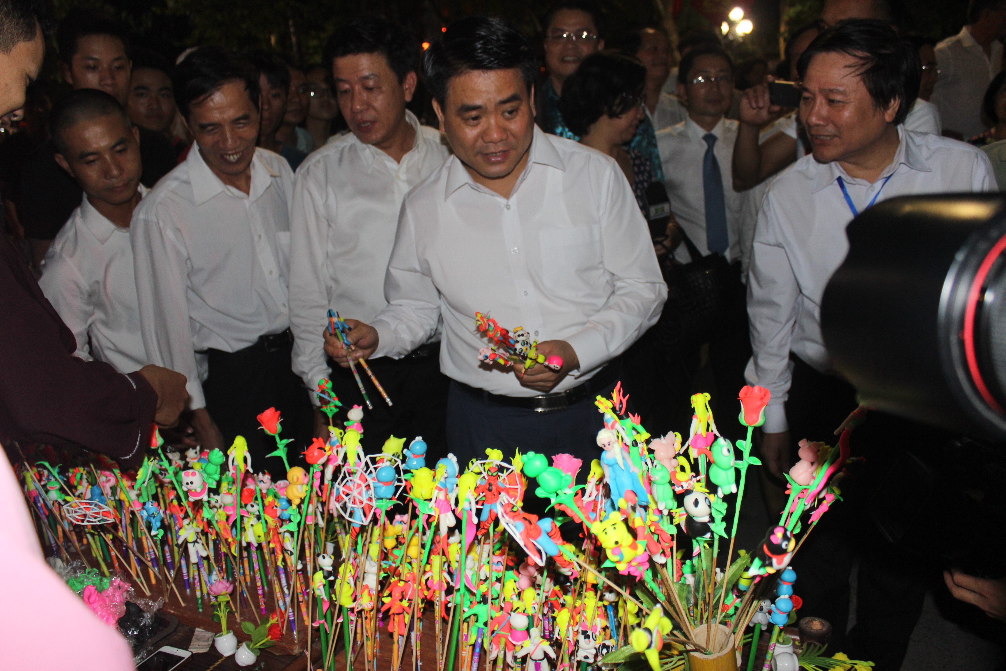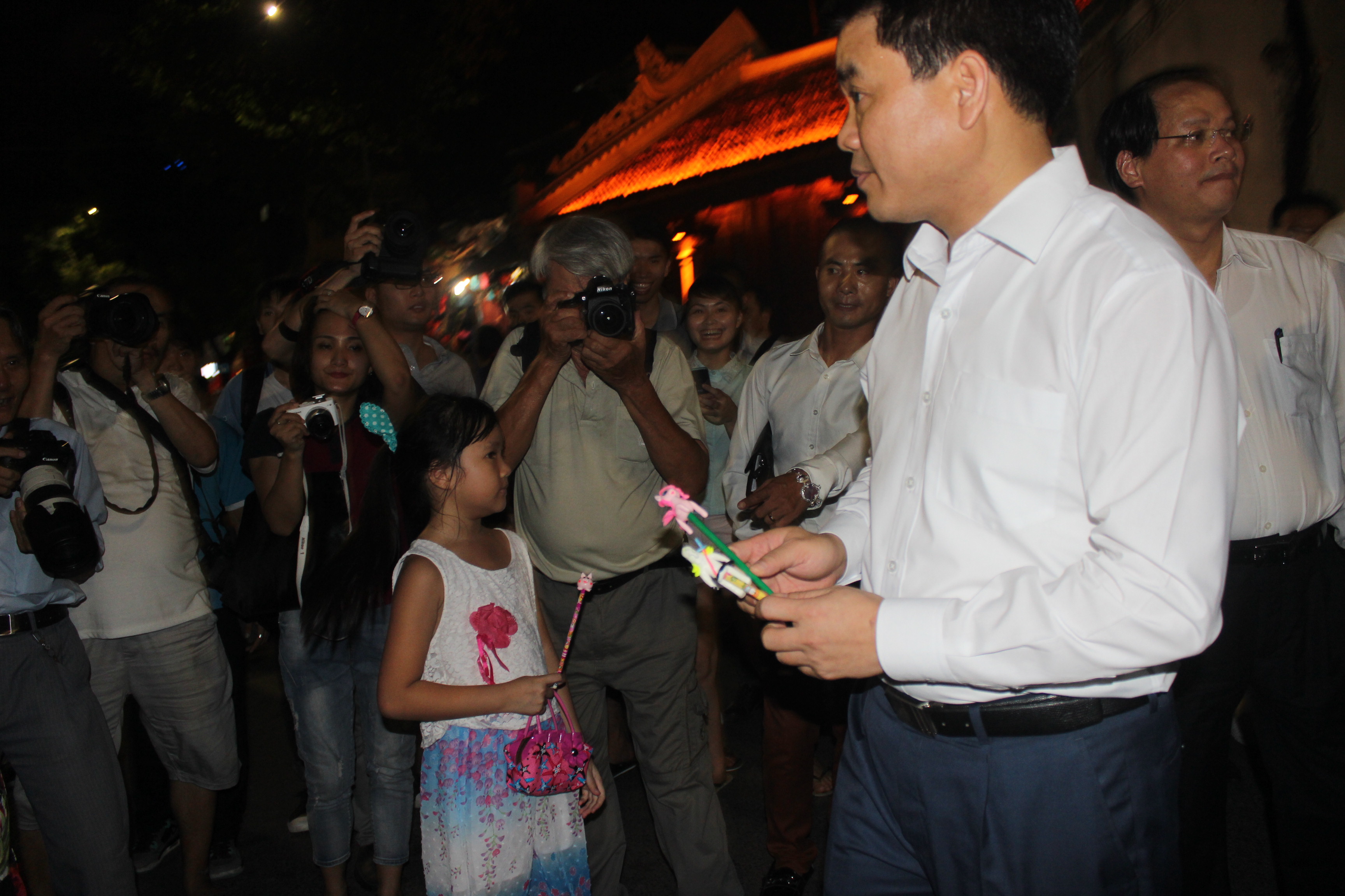 (VietQ.vn) - Tối qua (1/9), Chủ tịch TP. Hà Nội ông Nguyễn Đức Chung đã đi dạo trên phố đi bộ Hồ Gươm và mua tò he tặng cho người dân cũng như du khách ở đây.