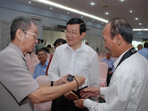 Sáng 26/11, Chủ tịch nước Trương Tấn Sang cùng tổ đại biểu Quốc hội (ĐBQH) TPHCM (đơn vị số 1) đã có buổi tiếp xúc với cử tri quận 1