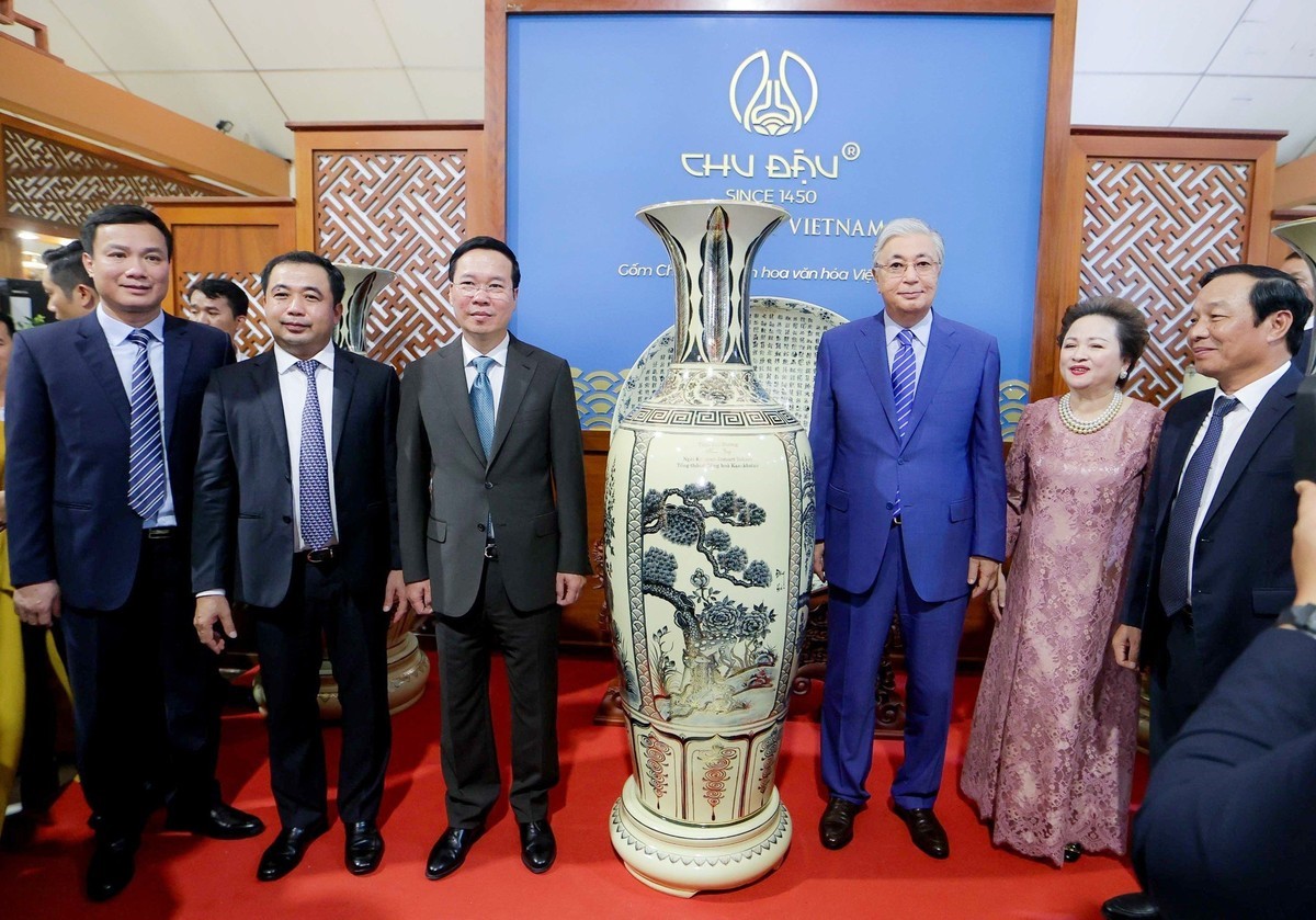 Chủ tịch nước Võ Văn Thưởng cùng Tổng thống Kazakhstan thử làm gốm Chu Đậu