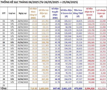 Kết quả là trong tháng đầu tiên, tôi có lợi nhuận 203.740 đồng. Cùng cách tính này, lợi nhuận của tôi giai đoạn 26/5-17/6 là 411.926 đồng. Như vậy, tính trung bình mỗi tháng tôi có thể thu được 550.000-600.000 đồng từ trụ sạc này.