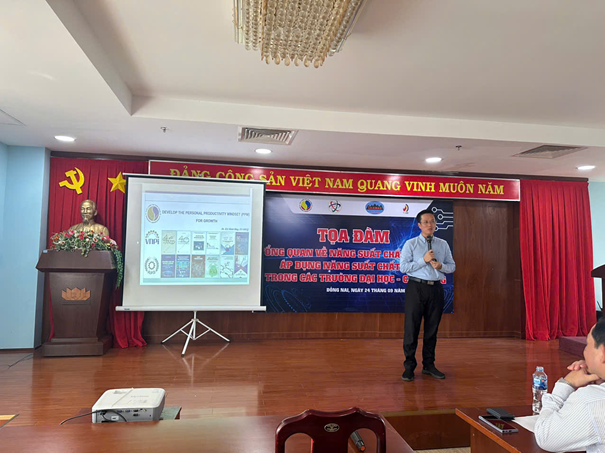 Bên cạnh phần trình bày chính, các giảng viên và sinh viên tham gia đã đặt ra nhiều câu hỏi về cách áp dụng năng suất chất lượng vào thực tế học tập và làm việc. Những ví dụ minh họa từ doanh nghiệp giúp người tham dự hiểu rõ hơn về cách các công cụ cải tiến có thể hỗ trợ nâng cao năng suất trong môi trường sản xuất và dịch vụ.