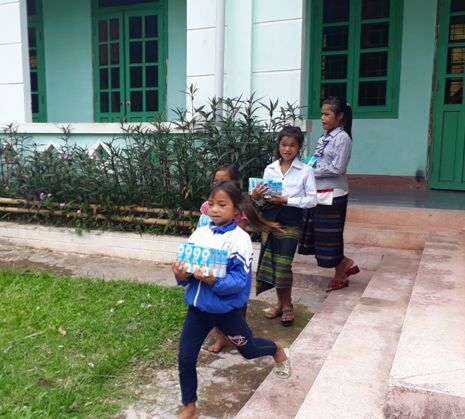 Phát sữa cho các em học sinh trường Nguyễn Văn Trỗi (Kon Tum)