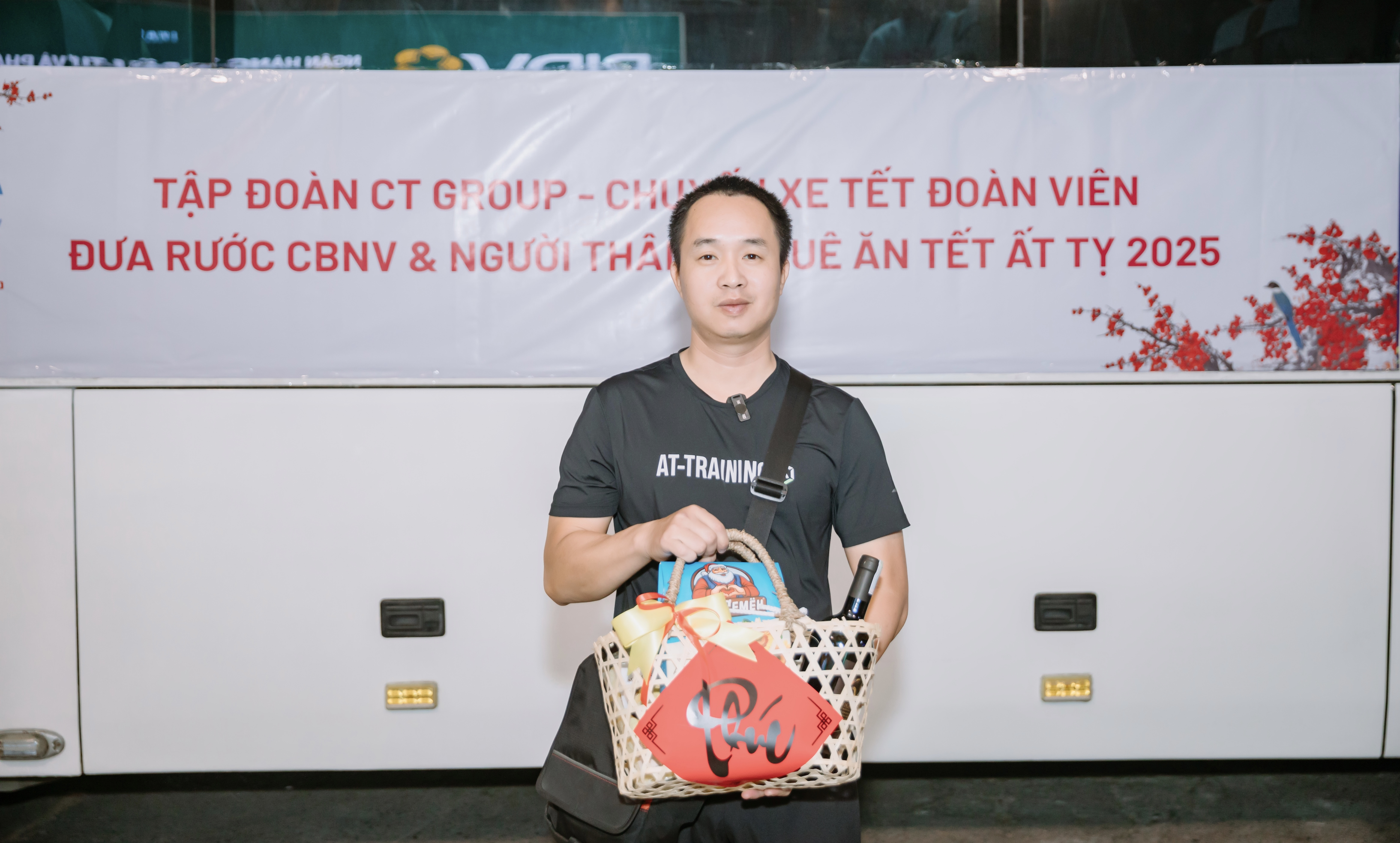 Đứng bên cạnh, anh Quốc Vương quê ở Bình Định cũng đang cẩn thận buộc lại những túi quà Tết, tiếp câu chuyện của mình: “Đây là lần đầu tiên tôi được trải nghiệm cảm giác được công ty tổ chức đưa về quê ăn Tết. Không chỉ tôi, mà cả gia đình tôi đều cảm nhận được sự ấm áp mà Tập đoàn CT Group mang lại”.