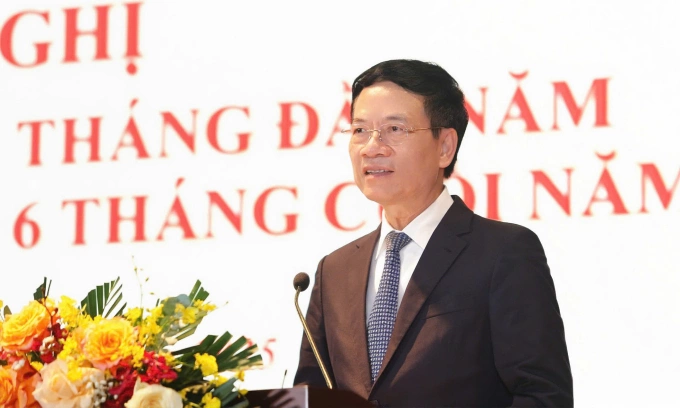 Bộ trưởng Khoa học và Công nghệ Nguyễn Mạnh Hùng phát biểu tại Hội nghị sơ kết 6 tháng đầu năm 2025, ngày 14/7.