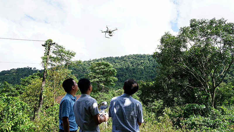 Sử dụng thiết vị bay flycam để hỗ trợ công tác quản lý, bảo vệ rừng. Ảnh L.A
