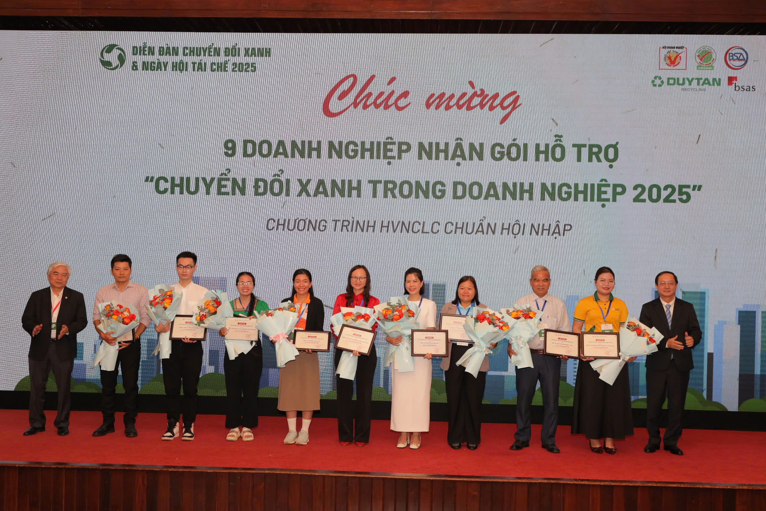 Để hiện thực hóa các điều trên, trong khuôn khổ Diễn đàn, chương trình “Kích hoạt Chuyển đổi Xanh” đã trao gói hỗ trợ trị giá 1 tỷ đồng cho 9 doanh nghiệp nhỏ và vừa, gồm các nội dung cụ thể như đào tạo, tư vấn tiêu chuẩn ISO, kiểm kê khí nhà kính và hỗ trợ chứng nhận. Đây là bước đi thiết thực nhằm hiện thực hóa chiến lược xanh hóa trong thực tiễn doanh nghiệp.