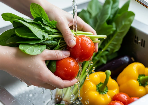 Điều quan trọng hơn cả là rửa mọi loại rau củ, kể cả những loại gọt vỏ trước khi ăn, như cam, chuối hay dưa hấu. Vi khuẩn hoặc dư lượng hóa chất có thể từ vỏ lây sang phần thịt quả trong quá trình cắt gọt. Ngoài ra, cần rửa tay sạch bằng xà phòng trước khi sơ chế và bảo quản rau củ đúng cách để hạn chế sự phát triển của vi sinh vật có hại.
