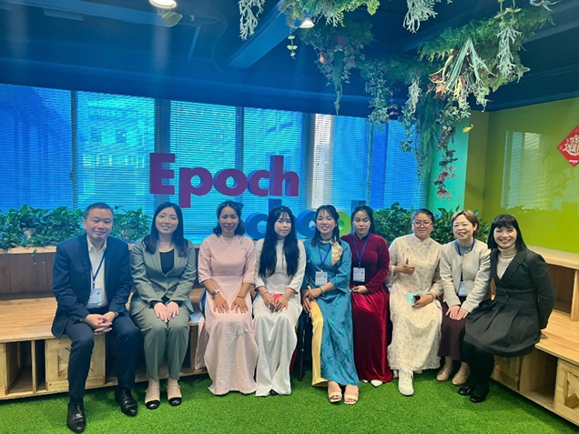 Đoàn tham quan Epoch Foundation - nơi đóng vai trò quan trọng trong việc thúc đẩy nền kinh tế tri thức.Buổi sáng, đoàn tham quan Epoch Foundation - nơi đóng vai trò quan trọng trong việc thúc đẩy nền kinh tế tri thức. Tại đây, chúng tôi được giới thiệu về các chương trình hợp tác giữa doanh nghiệp và học viện, cũng như những sáng kiến hỗ trợ startup và phát triển nhân tài. Không gian làm việc sáng tạo và môi trường năng động tại Epoch thực sự truyền cảm hứng, giúp chúng tôi hiểu hơn về hệ sinh thái đổi mới của Đài Loan.
