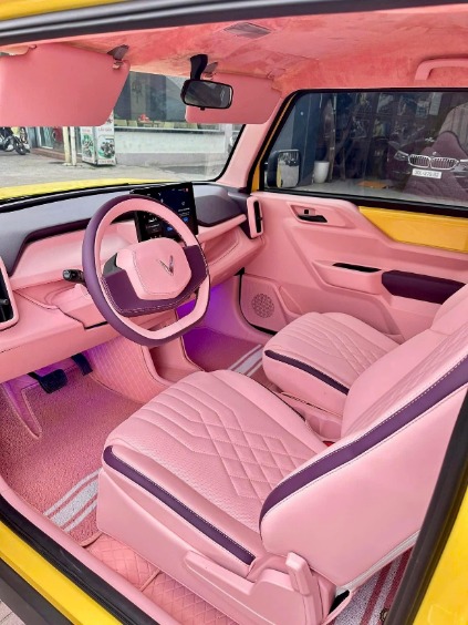 Chiếc xe mà chị Dung chọn có màu hồng, được mạnh tay “độ” thêm nội thất màu hồng – trắng, đèn trang trí và một số chi tiết bên trong theo sở thích. Chiếc xe trở nên cá tính, nổi bật hơn và thể hiện đúng phong cách của chị. Ngay sau khi hoàn thiện bản “độ” VF 3, chị Dung cũng từng mời nhóm bạn thân cùng trải nghiệm, mọi người đều có phản hồi tích cực.