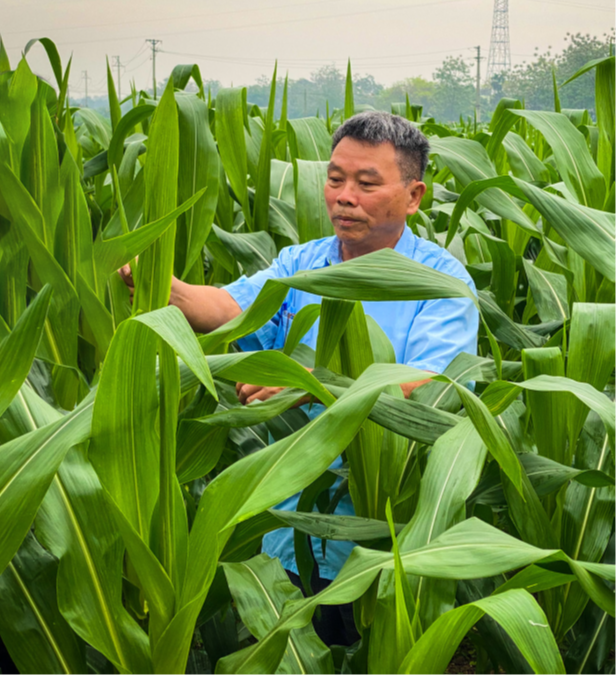 Nông dân kiểm tra sự sinh trưởng của giống ngô mới được ứng dụng công nghệ cao tại địa phương. Ảnh minh họa