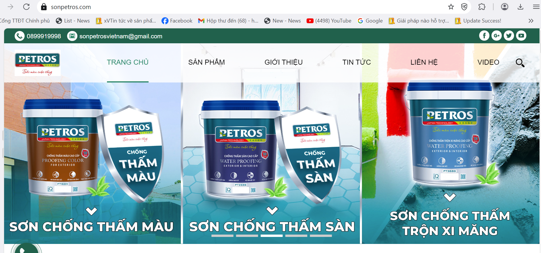Website giới thiệu sản phẩm của Công ty Cổ phần Sơn Petros Việt Nam.