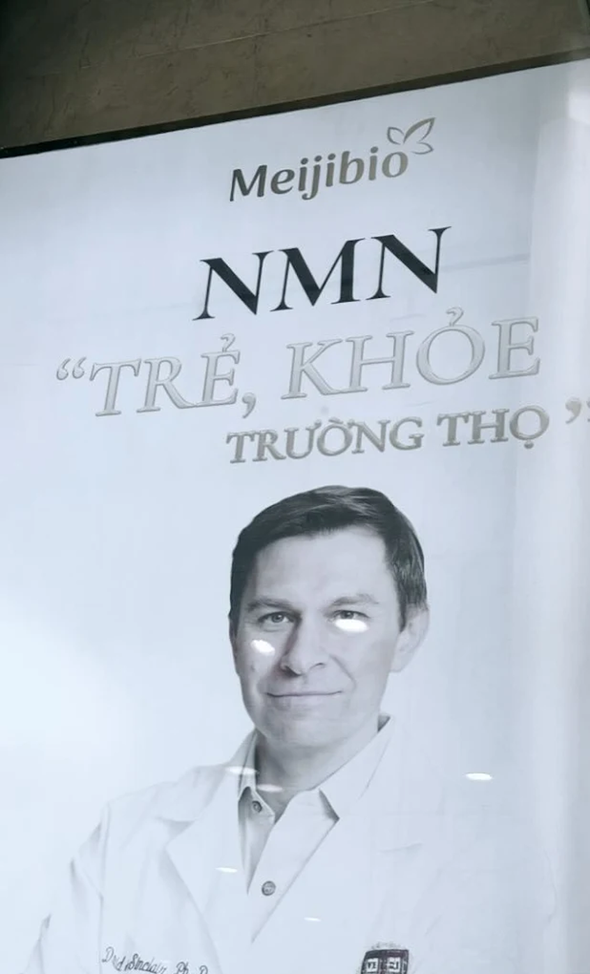 Dịch vụ NMN được quảng cáo là "Trẻ, khoẻ, trường thọ" trên áp phích của cơ sở.